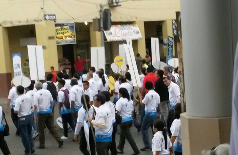 La marcha que se efectuó desde las 16h30 hasta las 17h30, finalizó con la entrega de un pliego de peticiones de parte de los trabajadores a la Ingeniera Susana Dueñas, Gobernadora de Manabí. /Redacción Manabí.