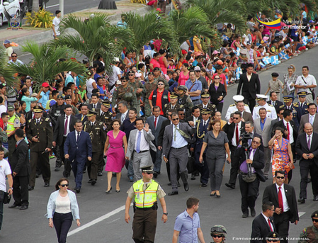 Previamente, se desarrolló el desfile cívico militar, que contó con la presencia del presidente Correa, ministro Serrano, el alcalde Zambrano, Susana Dueñas, gobernadora de Manabí; Mariano Zambrano, prefecto de la provincia; asambleístas, concejales, representantes de varias instituciones, ciudadanía en general, autoridades civiles, militares y eclesiásticas.