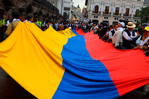 Por otra parte, un sector de la Confederación de Nacionalidades Indígenas (Conaie) que está inconforme con esta legislación, generó una movilización contraria. Esta concentración contó también con el resguardo policial correspondiente.