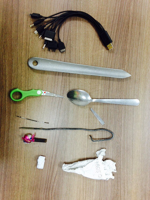 Como resultado de esta labor se encontró varias armas cortopunzantes que estaban en poder de los presos, como tijeras, limas, alambres y cucharas con puntas. También se encontró un sobre con marihuana, una pipa y un cable USB; objetos que estaban ocultos debajo de colchones y en medio de otros artículos. Las evidencias fueron halladas mediante un registro minucioso que se realizó en las celdas cuatro, cinco, 13 y 14.