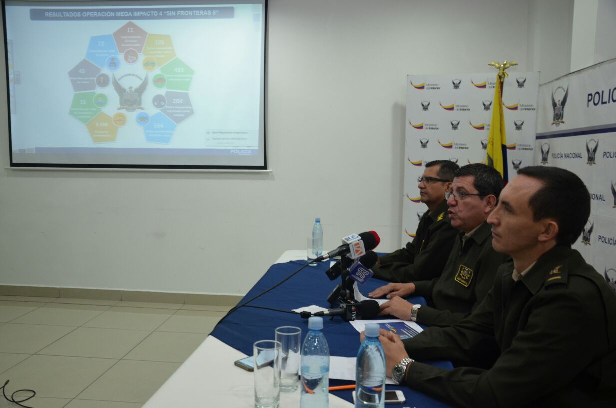 Quito, 22 de mayo de 2018. La operación Megaimpacto IV – Sin Fronteras II, dio como resultado la recuperación de 195 vehículos reportados como robados, 481 vehículos aprehendidos con alteración serial, 204 motos reportados como robadas, 554 motos aprehendidas por alteración serial y 8 499 autopartes. El operativo llevado a cabo durante 60 días fue parte de una planificación conjunta con las agencias policiales de 14 países de la región.