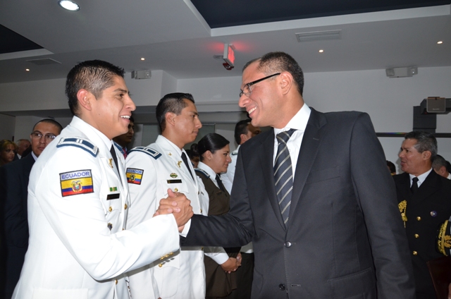 Para Jorge Glas, este ascenso profesional marca,  en el camino de los oficiales, un logro más, ganado con esfuerzo y sacrificio. «Un escalón lleno de historias de vida en favor de la comunidad. Insistió en el deber policial de cumplir a cabalidad su sagrada misión y juramento de honor, de ofrendar su vida si fuese necesario en  aras de consolidar el orden y la seguridad de cada uno de los ciudadanos de nuestro país. Además, felicitó la labor policial y recalcó que el policía no solo brinda seguridad a la autoridad, sino que también se convierte en un verdadero amigo de lucha, en muchas ocasiones receptor de angustias y desesperaciones por cumplir metas en beneficio de las familias ecuatorianas. El policía comprometido se debe a una sociedad en pie de lucha vinculada a un plan de gobierno basado en la ética, el compromiso y la lealtad».