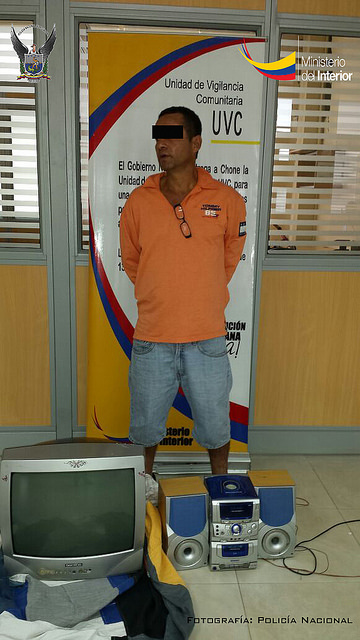 En una persecución ininterrumpida del delito, se coordinó con el fiscal y a las 15h00 se allanó la vivienda, donde encontraron un televisor marca Daewoo de 21 pulgas y un minicomponente de sonido marca Memorex, objetos que fueron reconocidos por la perjudicada.
