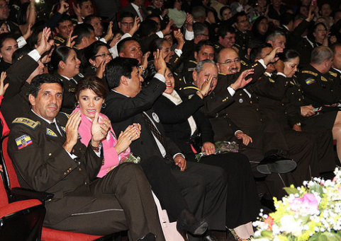 El evento se realizó la noche de este miércoles, en el teatro universitario de la Universidad Central del Ecuador y contó con la presencia del general Diego Mejía, comandante General de la Policía Nacional y el alto mando policial. Además, se contó con decenas de oficiales, clases y policías, que asistieron junto con sus esposas, esposos e hijos para presenciar el show.