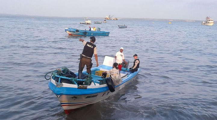 Horas más tarde llegó el barco Niña María, con 2.124 libras de pescado corvina. Los uniformados arrestaron a Teófilo Darío P. V., Tito Odilón P. S., Jhon Smith V. Z., ´Caballo´ y César Daniel L. H., ´Cjester´, este último tenía una orden de captura vigente emitida por el Juzgado Multicompetente del cantón Playas.