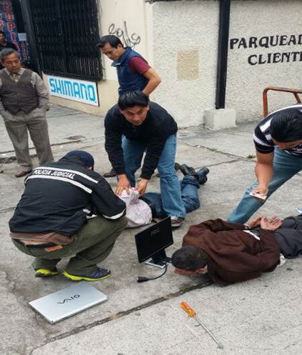 Dos ciudadanos colombianos, fueron aprehendidos por miembros de la Policía Judicial (PJ) de la Zona 09 del Distrito Metropolitano de Quito, cuando salían de un inmueble portando equipos de oficina y herramientas con las que procedían aviolentar las seguridades de propiedades privadas.