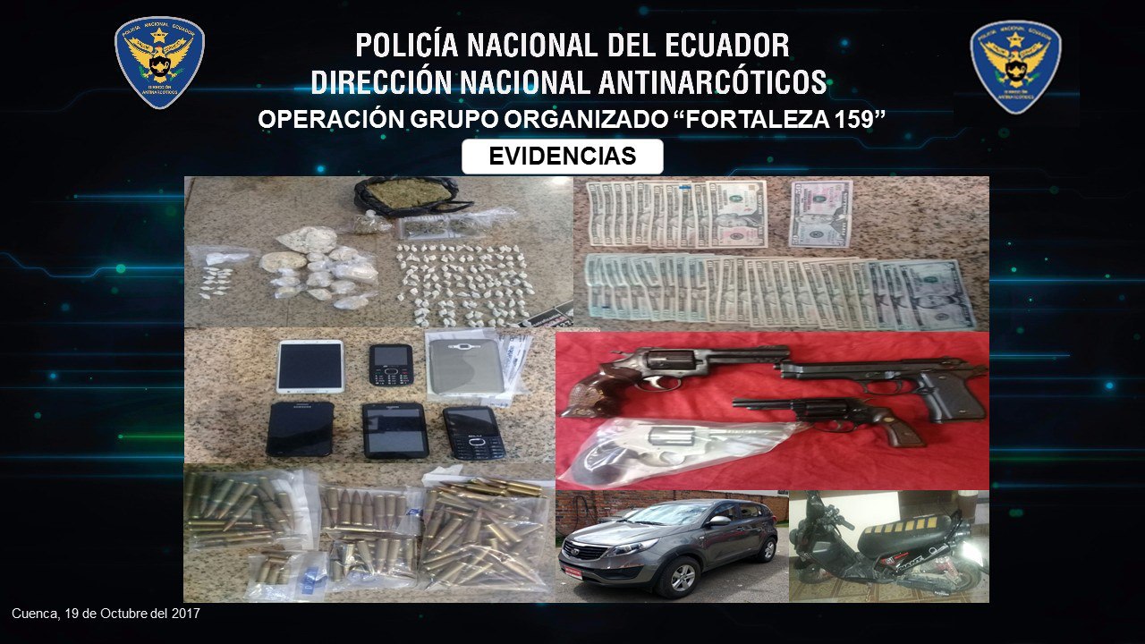 A través de acciones coordinadas entre la Jefatura Antinarcóticos del Azuay y la Fiscalía General del Estado (FGE), se logró desvincular una importante organización delictiva vinculada al microtráfico, durante rueda de prensa desarrollada la mañana de este viernes 20 de octubre, el gobernador Xavier Enderica, el Coronel Pablo Tamayo, jefe de la Subzona Azuay, Adrian Rojas, Fiscal provincial y Mateo Ríos, Director del Consejo de la Judicatura sede Azuay, dieron a conocer los resultados finales del operativo Fortaleza 159.
