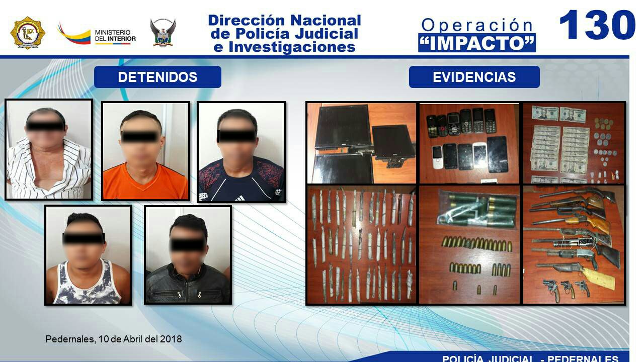 Mediante técnicas de investigación, los agentes de la Policía Judicial conocieron que en los cantones Jama y Pedernales estaría operando este grupo delictivo, identificando a los sospechosos y los lugares donde ocultaban armas y objetos de dudosa procedencia.