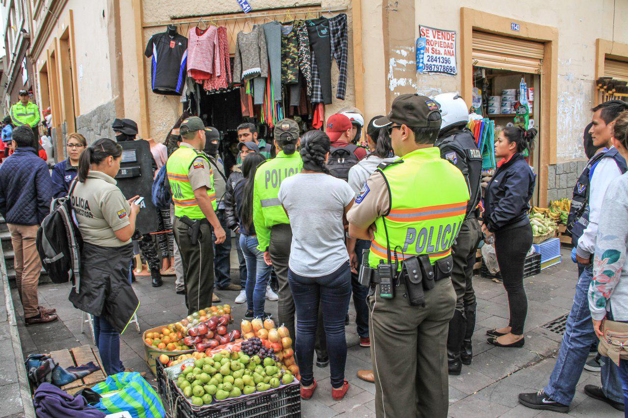 Cerca de las 14h00, los uniformados, organizados en grupos, llegaron hasta el centro de abastos ubicado en pleno Centro Histórico de la urbe para hacer efectiva la orden de detención de varias personas y el allanamiento de un local comercial donde se presumía servía de centro de acopio de droga.