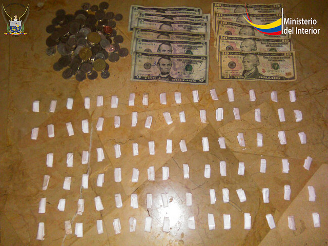Durante el registro al inmueble, se decomisó la cantidad de 18 dólares y 92 sobres de cocaína que fueron descubiertos dentro de un saco de yute, al interior de una habitación. Por tal razón, se detuvo a la ciudadana Ana Ch.M., de 37 años de edad, para que responda por la tenencia de esta droga que tenía un peso de 42,7 gramos.