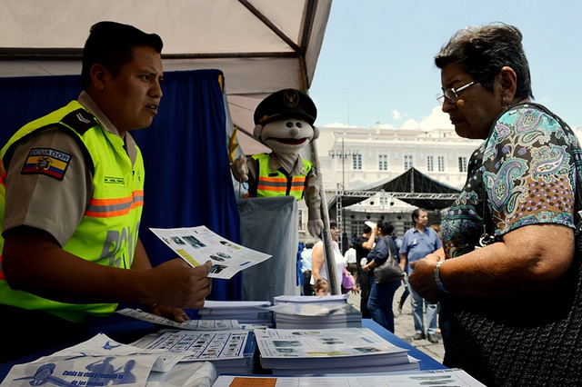 Quito.- La Dirección de Control de Tránsito y Seguridad Vial están presentes en la feria ciudadana Todos Somos Ecuador, que se realiza en la Plaza de San Francisco y que es organizada por los artesanos y comerciantes de Carchi.