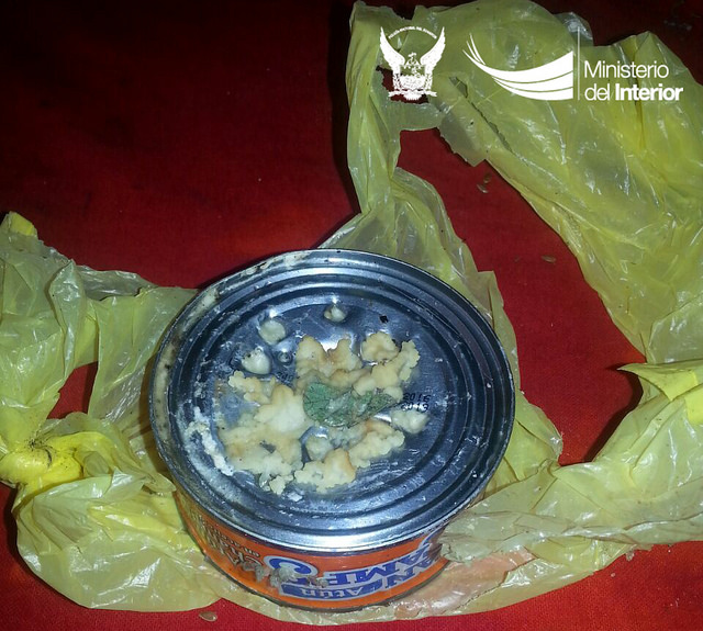 Los uniformados efectuaron una revisión de rutina en un local que presta los servicios de envío de remesas. El primer caso se registró dentro de una encomienda con guía de remisión N.-004928, que fue revisada minuciosamente por los agentes. En la misma se descubrió una funda plástica color banco, que contenía una caja de atún, marca Van Camps.