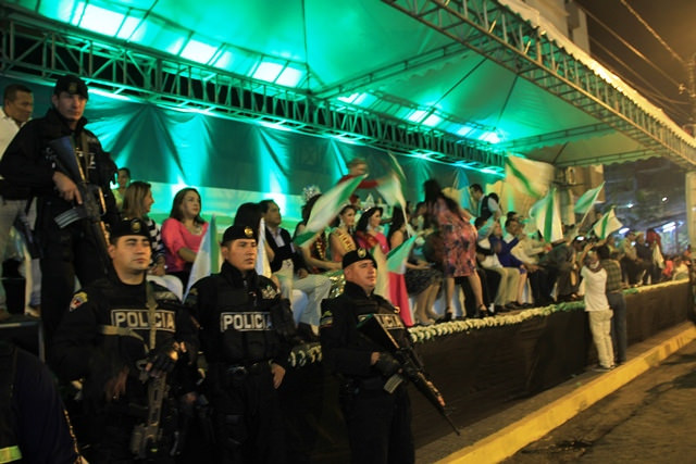 Quevedo.- Esta noche de desarrolló el masivo pregón por las próximas fiestas de los 72 años de cantonización de Quevedo. La seguridad de la ciudadanía estuvo garantizada por un fuerte contingente policial que resguardó cada una de las actividades que se llevaron a cabo.