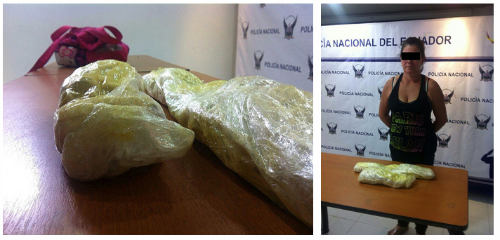 La ciudadana de nacionalidad colombiana Esperanza B.B., de 43 años de edad, fue detenida por los agentes Antinarcóticos de la zona 9, minutos después de arribar vía terrestre hasta la capital, proveniente de Sucumbíos.