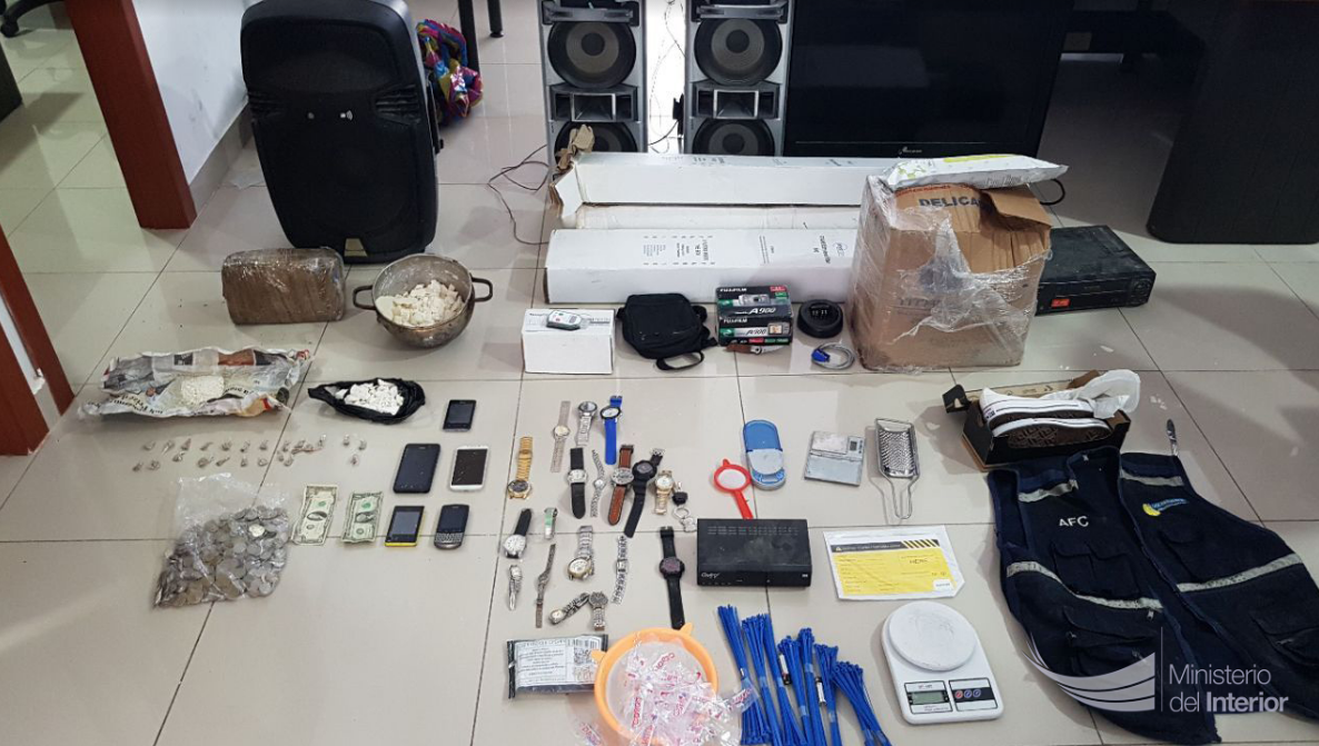 El resultado de este operativo permitió, al mismo tiempo, conocer la ubicación de tres viviendas, que fueron allanadas con la presencia del fiscal Péter Jácome y en las que se encontró dos kilos de marihuana, un kilo de cocaína, una subametralladora, sin serie de fabricación nacional; dos armas de fuego tipo revolver, calibre 22mm marca astra; un arma de plástico similar a un arma de fuego, tres armas blancas y varios objetos de dudosa procedencia, entre ellos: televisores, motores, herramientas industriales, radios de vehículos, motores, celulares, televisores, entre otros.