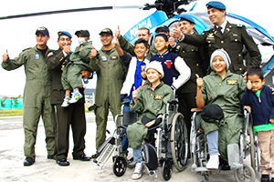 Quito.- La tarde del martes, 10 de junio, la Policía Nacional a través de la Unidad de Aeropolicial cumplió el sueño de cuatro menores de edad de la Fundación Juan José Martínez: viajar en helicóptero. Los pequeños son pacientes del Hospital de Solca y padecen cáncer.