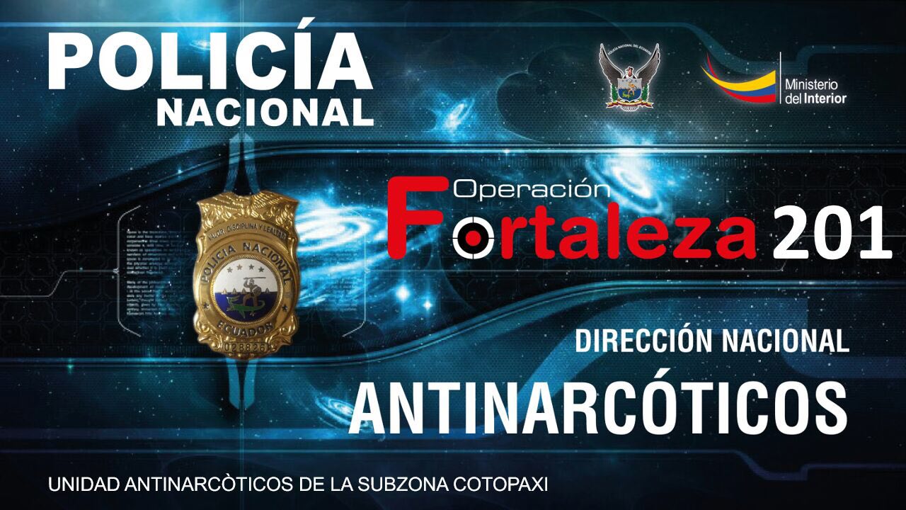 La Policía Nacional del Ecuador, a través de la Dirección Nacional Antinarcóticos, en coordinación con la Unidad Sub zonal Antinarcóticos de Cotopaxi y la Fiscalía General del Estado, ejecutó la operación “Fortaleza 201”, que tuvo como resultado la desarticulación de una organización dedicada al expendió y distribución de sustancias sujetas a fiscalización. La acción se llevó a cabo la noche del 18 de noviembre en Latacunga, Cotopaxi.