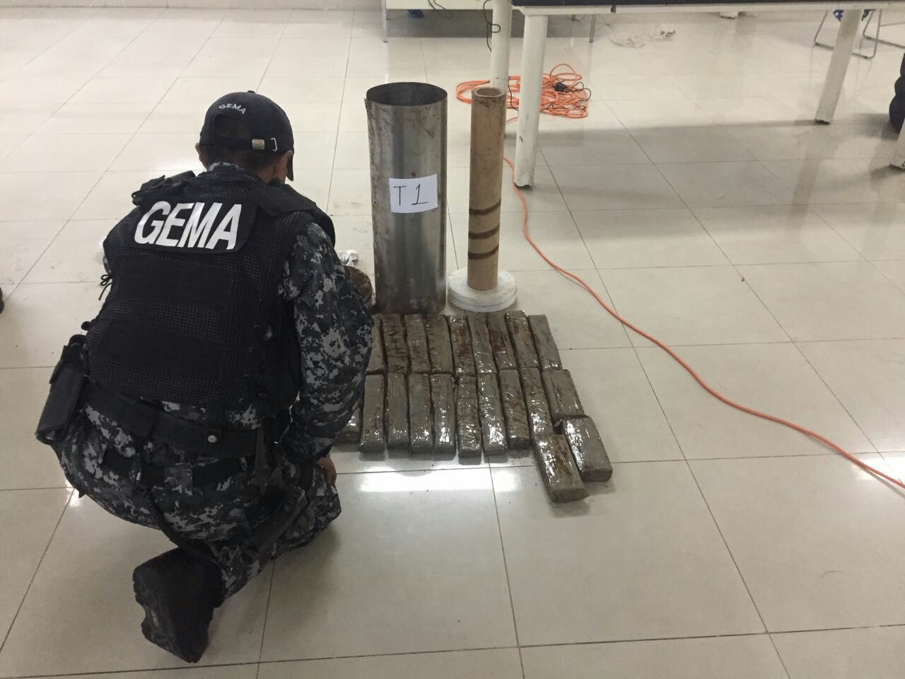 Esta información fue dada a conocer a la fiscal de turno del cantón Quijos, Judith Torres, para que avale la apertura de los rollos de plásticos. Al lugar llegó personal de Criminalística, y encontró en el interior de los tubos plásticos 93 paquetes envueltos con cinta de embalaje color café, los mismos que fueron sometidos a las pruebas de PIPH y dio positivo para marihuana con un peso de 33.747 kilos.