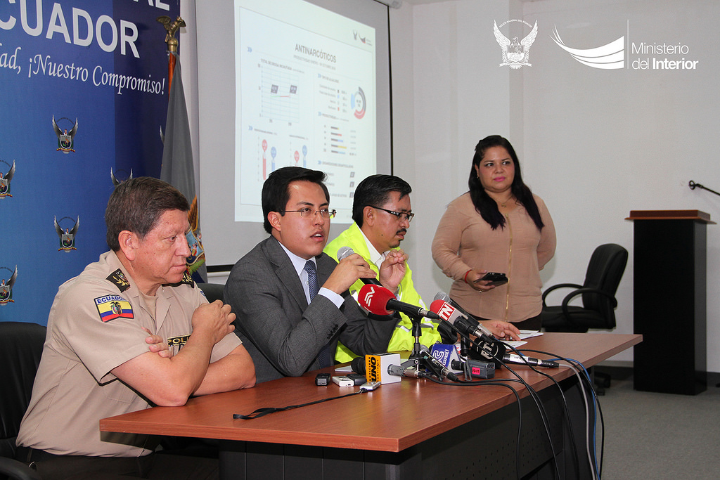 Diego Fuentes, viceministro de Seguridad Interna, acompañado por el general Ramiro Mantilla, director General de Operaciones y el teniente coronel Enrique Bautista, jefe de Antinarcóticos de la Zona 8, aseguró que se está asumiendo el control de personas y revisión de los buses en las fronteras de Ecuador, para evitar que la droga pase desde los países vecinos, por lo que solicitó a los ciudadanos que colaboren con las interdicciones ejecutadas por la Policía Nacional.