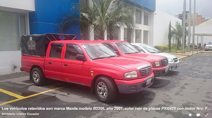 Los vehículos retenidos son marca Mazda modelo B2200, año 2007, color rojo de placas PXI0420, con motor Nro. F2834153; y, chasis número 8LFUNY0247M005664. / Redacción Quito.