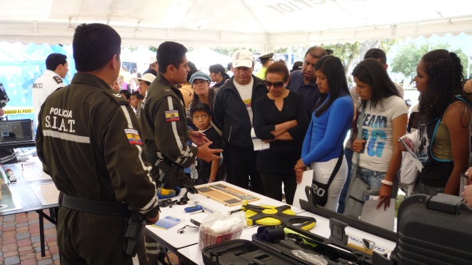 Quito.- La Policía Nacional, a través del Distrito La Delicia de Quito, realizó el domingo 27 de abril en el barrio Carcelén, la feria de seguridad ciudadana “Por una comunidad más segura y libre de estigmatización”. El objetivo de los agentes fue establecer los contactos ciudadanos, mediante la exposición de servicios policiales, que permitan una mejor relación y por ende un trabajo coordinado por la seguridad, entre la institución policial y los habitantes.
