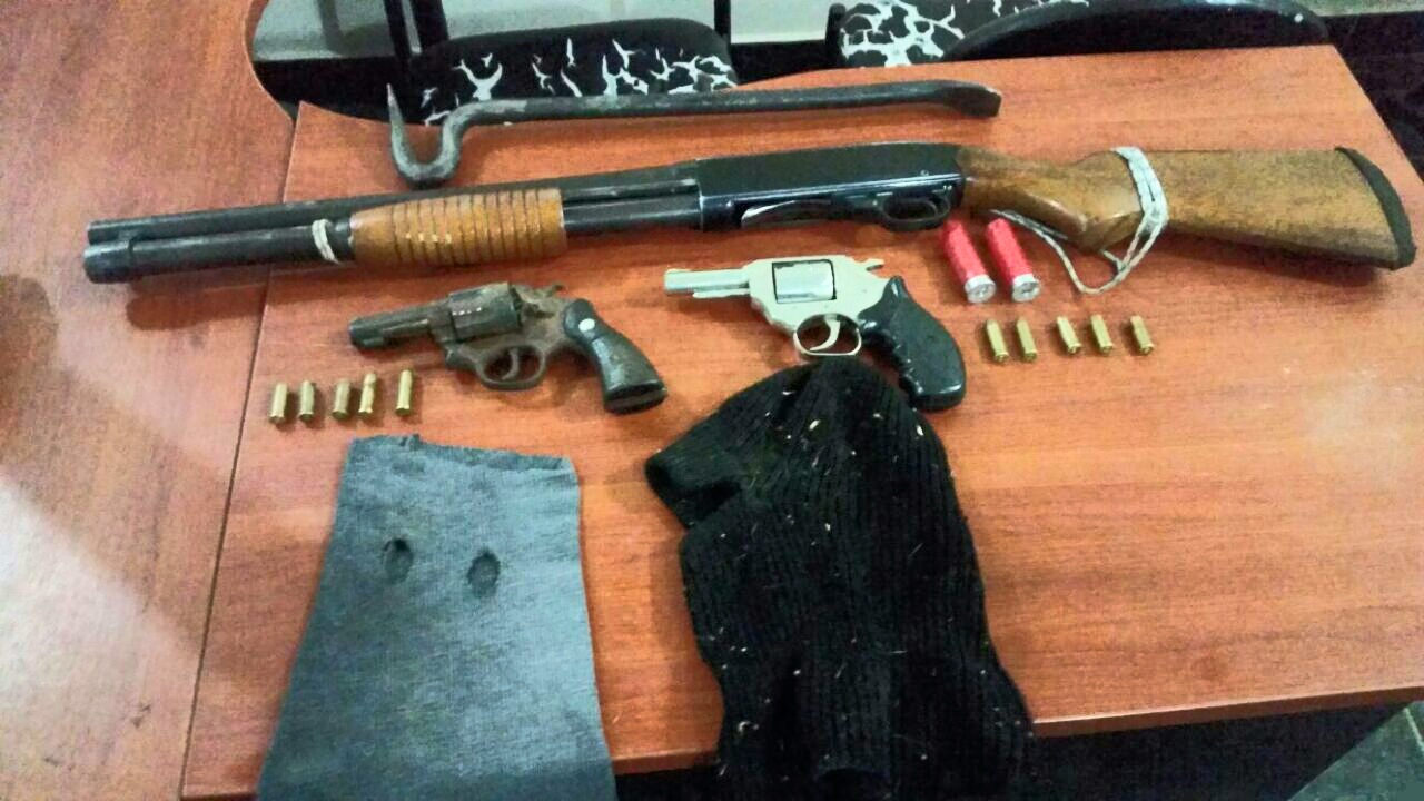 Uno de los sospechosos, Servio J., fue detenido mientras permanecía escondido dentro del predio irrumpido. En el fondo de la bodega se observó una cuerda amarrada en una varilla, aproximadamente a 5 metros del suelo, desde donde se presume habrían ingresado los sujetos. También se encontró dos armas de fuego tipo revólver y un pasamontañas.