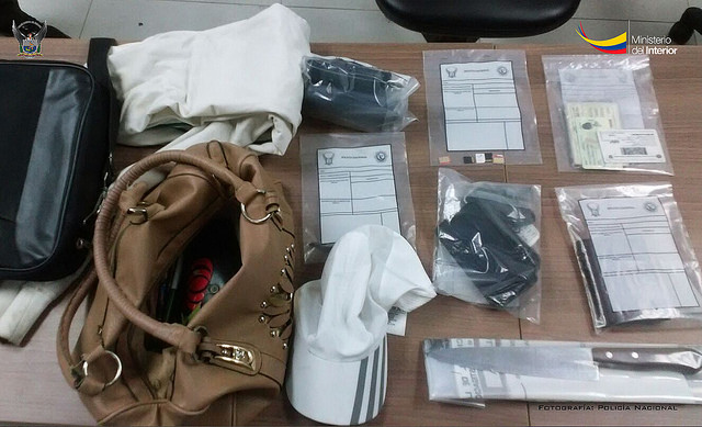 El registro minucioso del vehículo permitió hallar, como indicios del supuesto delito cometido, un cuchillo cacha de madera, un desarmador, un disco duro, cuatro teléfonos celulares, una cartera color café con artículos de maquillaje, un maletín con documentación, y varios objetos más.