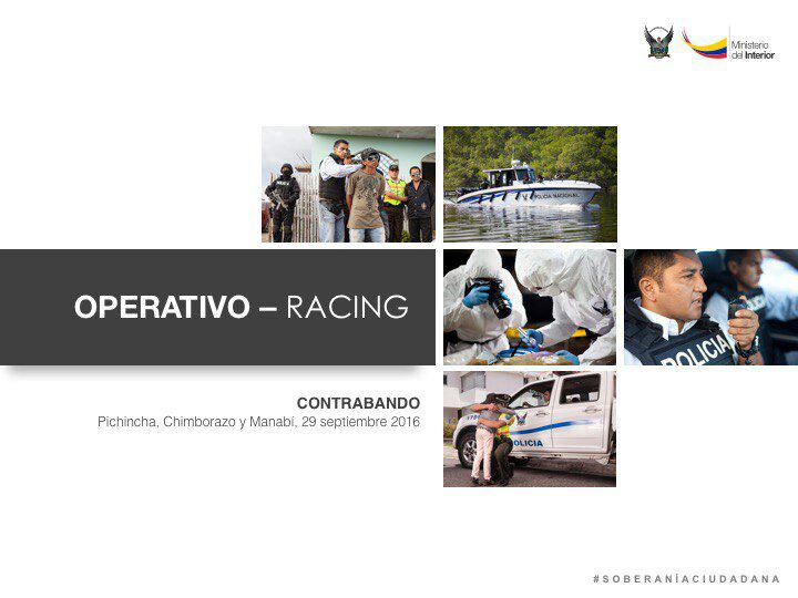 En rueda de prensa, Diego Fuentes, viceministro de Seguridad Interna y el coronel Carlos Alulema, director Nacional de la Policía Judicial (DNPJ), informaron que esta acción policial fue ejecutada en las provincias de Pichincha, Chimborazo y Manabí, en donde se detuvo a ocho personas, entre ellos un mayor de la Policía en servicio activo y un exservidor público.