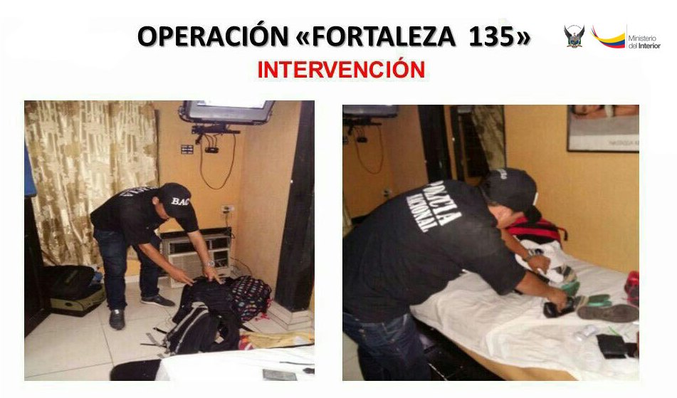 El operativo se realizó en el hotel donde se hospedaban Lady B. E.; Erica P. I.; Andrés M. L.; Yeison M. M.; de nacionalidad colombiana, quienes fueron arrestados. Se encontró además varios indicios, tres teléfonos, entre ellos un celular reportado como robado, un reloj, una billetera, 12 dólares, prendas de vestir formal.