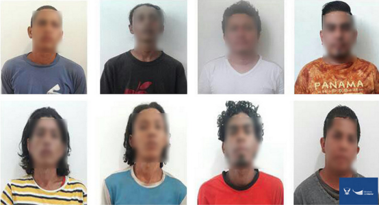 Kevin Javier, S.M., de 23 años de edad;  Oscar Alejandro, F.M., de 22 años; José Luis, M.B., de 21 años;  Eduardo Javier, A.S., de 29 años;  Jennifer Priscila, G.M., de 22 años,  Anthony Daniel, G.V., de 17 años; Christian Wellington, L.L., de 32 años; Leonardo Javier, Q.M., de 30 años y Damián, R.A., de 26 años de edad.
