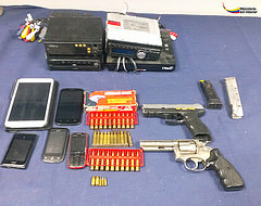 Entre las evidencias que retiró la Policía Nacional estaban: un arma de fuego, tipo revólver calibre 38; una pistola marca Taurus, calibre 9 mm. Dos alimentadoras, 30 cartuchos calibre 2.23, cuatro teléfonos celulares, una tablet, una radio base Motorola, dos radios de vehículos y un decodificador de TV cable. /Redacción Los Ríos.