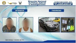 Santo Domingo. Dos presuntos estafadores fueron detenidos este miércoles 10 de enero de 2018, por agentes de la Policía Judicial de Santo Domingo de los Tsáchilas (PJ). Los informes policiales indicaron que a través de labores de inteligencia se conoció que dos hombres se dedicaban a engañar a personas, con el fin de obtener réditos económicos.