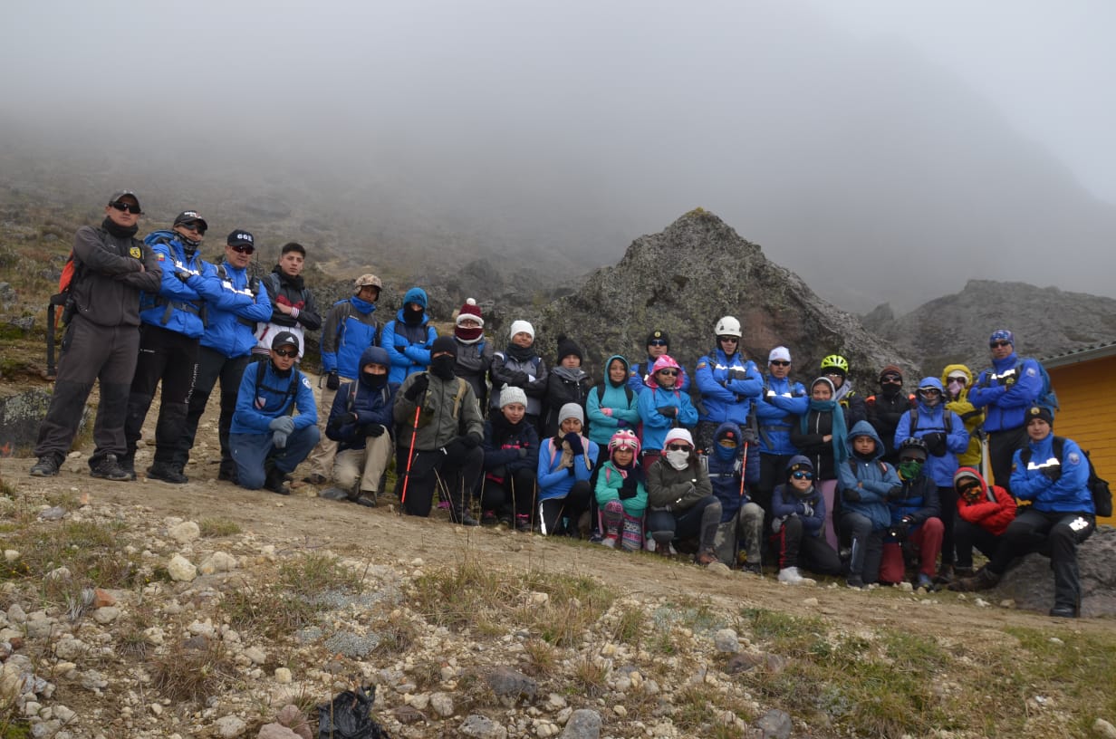 Tras dos días de preparación en: técnicas paramédicas, medidas de autoprotección, protocolos para una actividad en montaña; técnicas defensivas en Jiu Jitsu y manejo de sistemas móviles para orientarse; 30 excursionistas de montaña de entre 14 y 45 años de edad (hombres y mujeres) ascendieron el día de ayer al Rucu Pichincha, junto con un equipo experimentado de montañismo del GOE.