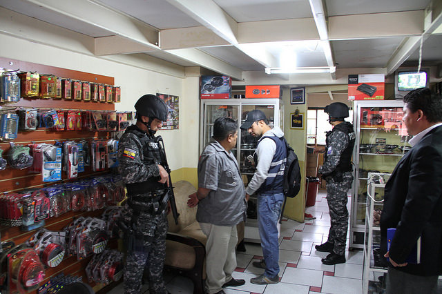 El operativo Punta Blanca II se ejecutó en Cuenca, el pasado martes. Se allanaron 11 inmuebles en diferentes sectores de la ciudad. Entre las evidencias se incautaron accesorios de vehículos como radios, parlantes, memorias, neumáticos, cables, tacómetros, cajas eléctricas y bases de radios. Además, una motocicleta, dinero en efectivo, televisores, teléfonos celulares y cuadernos.
