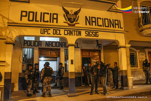Alrededor de las 18h00, el coronel Pablo Ramírez, jefe de la Policía Judicial en el Azuay, personal del Grupo de Operaciones Especiales (GOE) y Dirección General de Inteligencia (DGI), concentraron a todo el personal policial que presta servicio en el cantón Sígsig.
