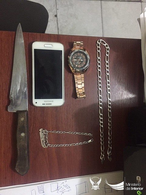 En una reacción inmediata, la Policía Nacional ejecutó un operativo por toda la zona y alrededores, en la búsqueda del presunto responsable del acto delictivo. En la calle 14 y avenida 28 fue localizado Jhonny C., supuesto autor. Un reloj, un teléfono Samsung S5 mini, una cadena y una manilla de plata fueron los indicios que el sujeto tenía cuando fue detenido.
