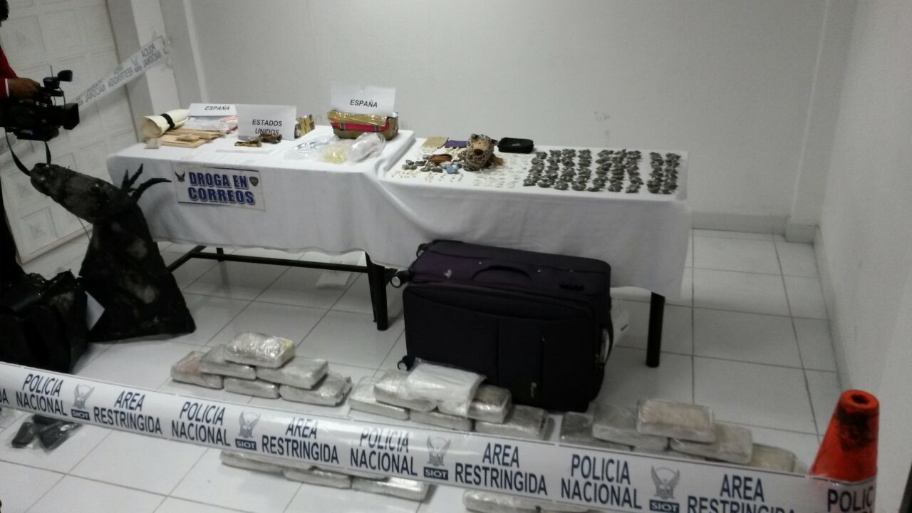 Este jueves, mientras se realizaban controles a las encomiendas en una de las agencias de correos paralelos, por parte de agentes de la Unidad de Antinarcóticos de Pichincha, se localizó un paquete que contenía una artesanía en forma de un venado metálico, en el cual se escondía en su interior 13 paquetes de cocaína, con un peso de 1,5 kilos, que tenía como destino España.