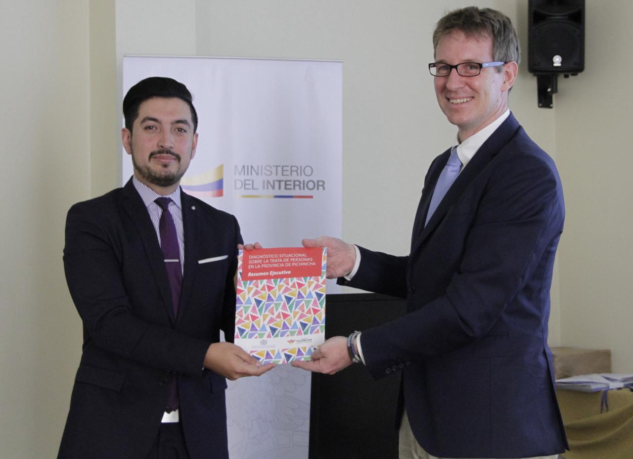 Damien Thriaux, jefe de Misión de la OIM, recalcó la importancia de contar con información base para el análisis de la problemática. Además, señaló que la OIM lleva trabajando más de 24 años en el Ecuador, brindando apoyo al Gobierno y a la sociedad civil, en busca de erradicar el delito de la trata de personas.