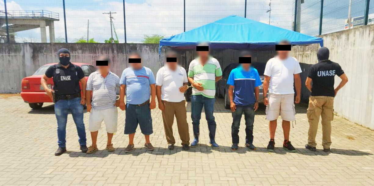 Los agentes efectuaron un operativo, el mediodía de este martes 21 de marzo. Aprehendieron a William V., Franklin R., José V., Manuel B., y dos personas más. Ellos fueron llevados a la Unidad Judicial Penal de Chone para que se resuelva su situación jurídica.