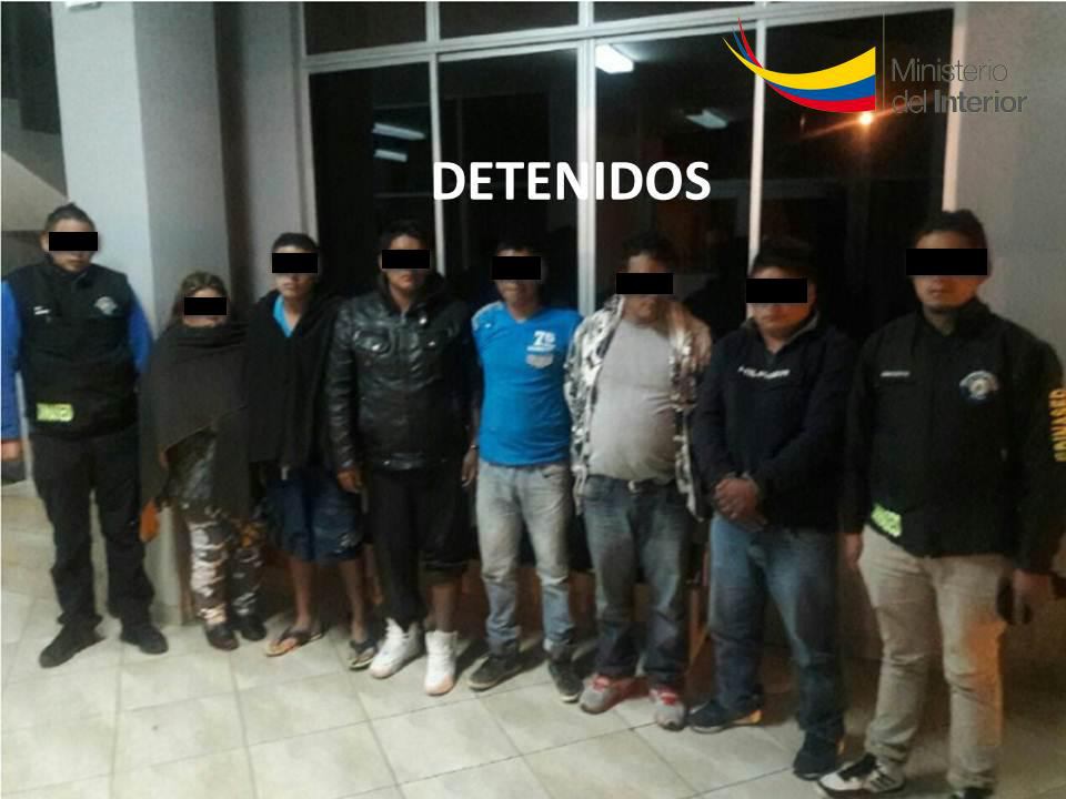 Los detenidos fueron identificados como, Sandra del Rocío T., Julio Rigoberto R., Christian Paúl P., Héctor Germán P., Luis Roberto M., y Carlos Abraham S.