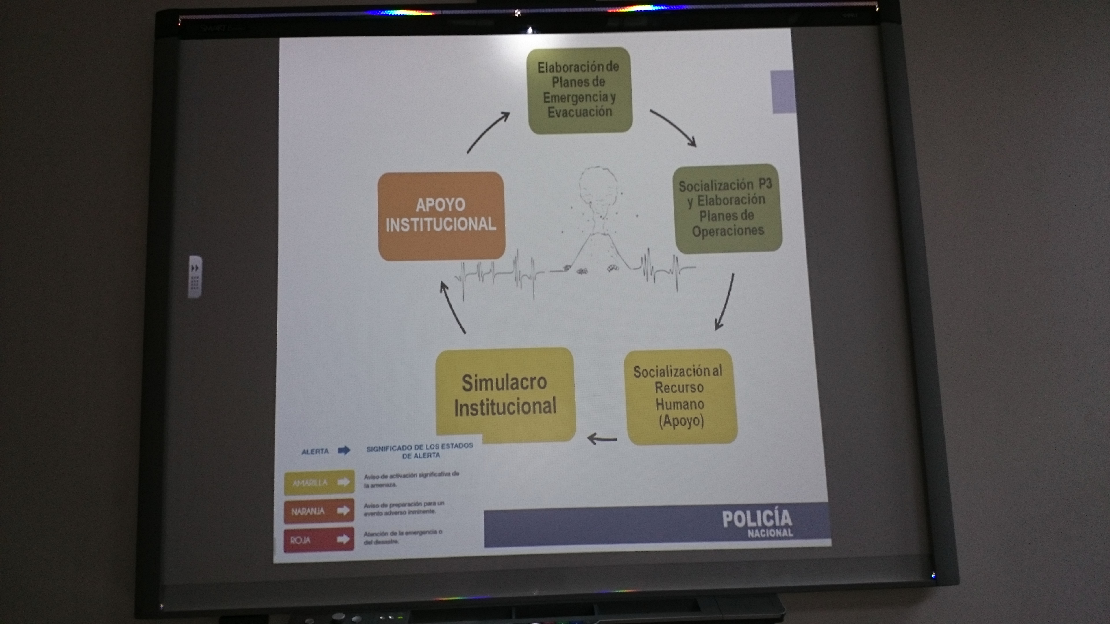 Miguel Ángel Camacho, funcionario del Departamento de Seguridad y Gestión de Riesgos de la Dirección Nacional de Operaciones de la Policía Nacional, indicó que en trabajo coordinado con el Ministerio del Interior y demás autoridades se mantienen permanentemente la realización de planes de emergencia y evacuación, socialización del contingente en las unidades policiales y planes operacionales. También, simulacros institucionales y fortalecimiento del apoyo institucional.