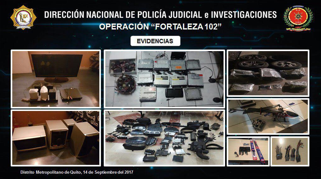 Quito.- Una presunta organización delictiva dedicada al robo a personas, domicilios, bienes, accesorios y autopartes de vehículos, desarticuló la Policía Nacional, a través de la Unidad de Inteligencia Antidelincuencial (SIA-UIAD), este 14 de septiembre, en la operación Fortaleza 102.