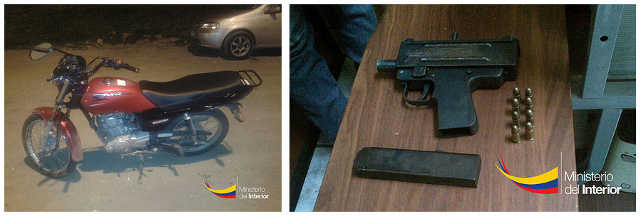 El primer caso se registró en la Mz. 2 solar 6, de la Cooperativa Valle Independiente, donde la Policía logró detener Eduardo Gustavo A. de la V., de 21 años, y Francisco Teodoro Z. C., de 19 años, quienes portaban un arma de fuego y circulaban de forma sospechosa a bordo de una motocicleta.