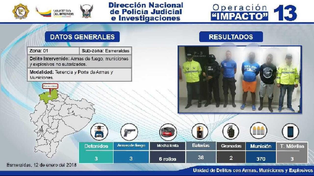 Según los informes de inteligencia, los detenidos habrían participado en el atentado contra servidores policiales del Grupo Especial Móvil Antinarcóticos (GEMA), hecho ocurrido el 3 de noviembre de 2017, en el sector de La Cadena.