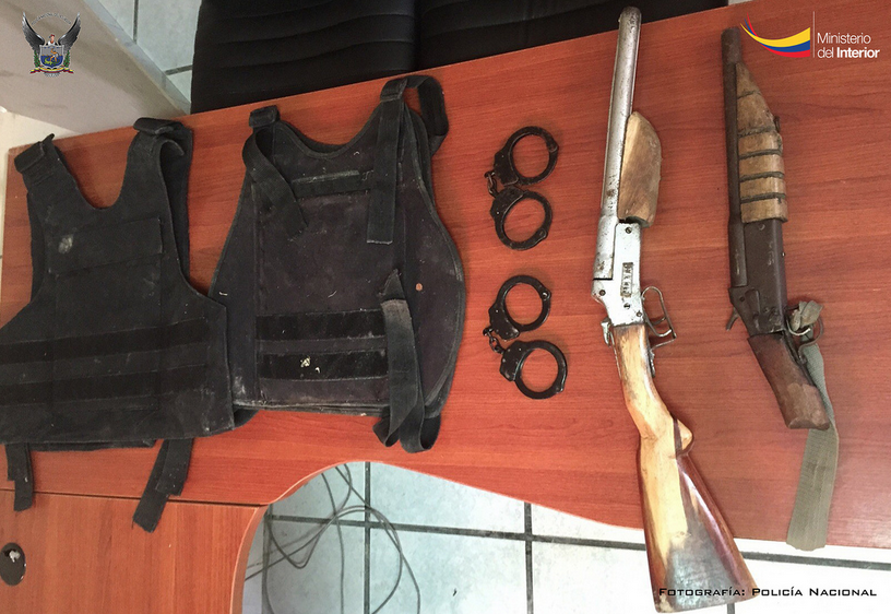 En el registro de la vivienda encontraron dos chalecos antibalas, dos esposas y dos armas de fuego. La operación policial se realizó a las 05h00 de este 14 de agosto, en el sitio Agua Fría, del cantón Santa Ana.
